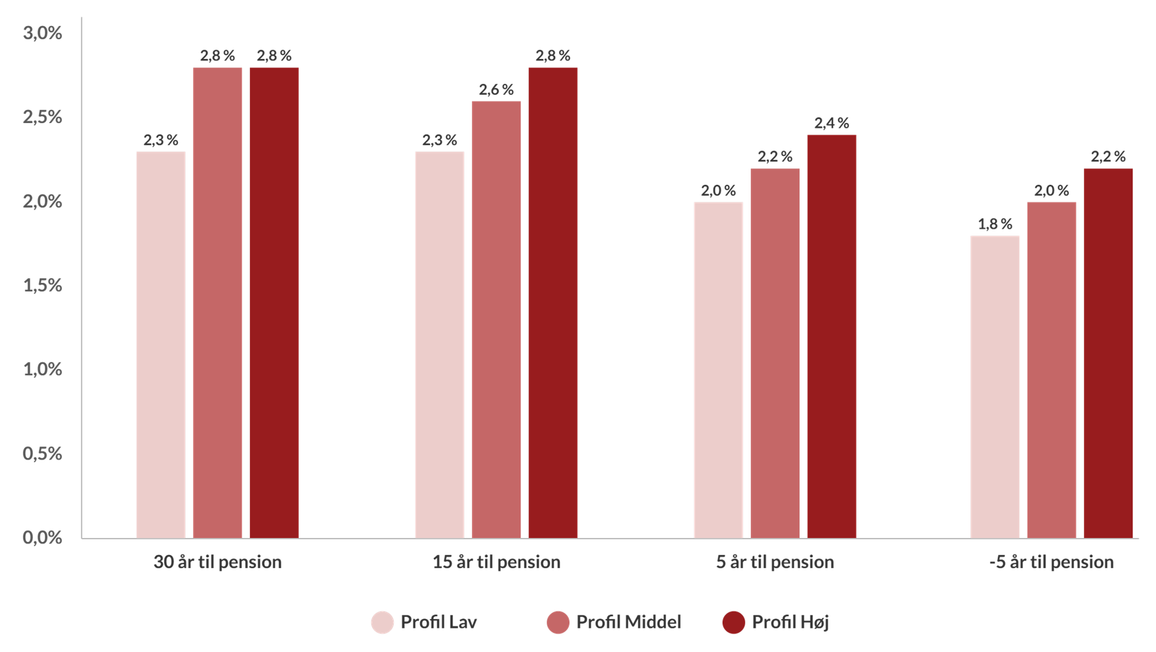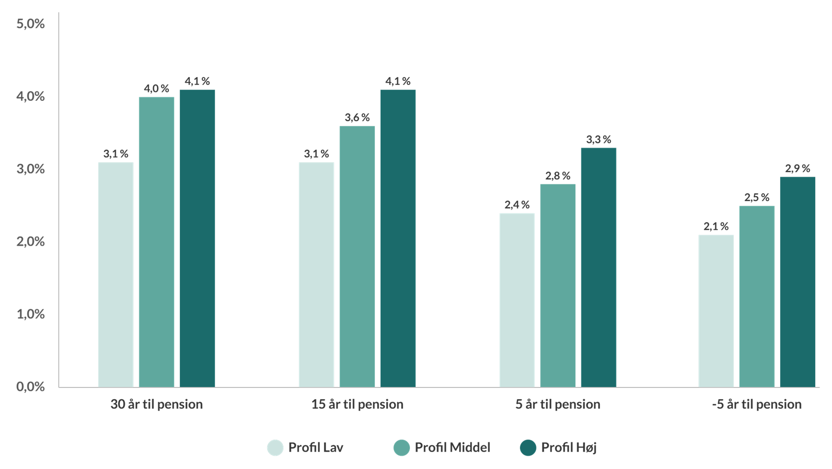 Lavrisikoprofilerne opnåede ligeledes positive afkast. Her var obligationsporteføljen den primære drivkraft, hvor både stats- og realkreditobligationer, kreditobligationer samt indeksobligationer bidrog positivt. Risikostyring har desuden bidraget positivt i både Høj og Lav porteføljen.